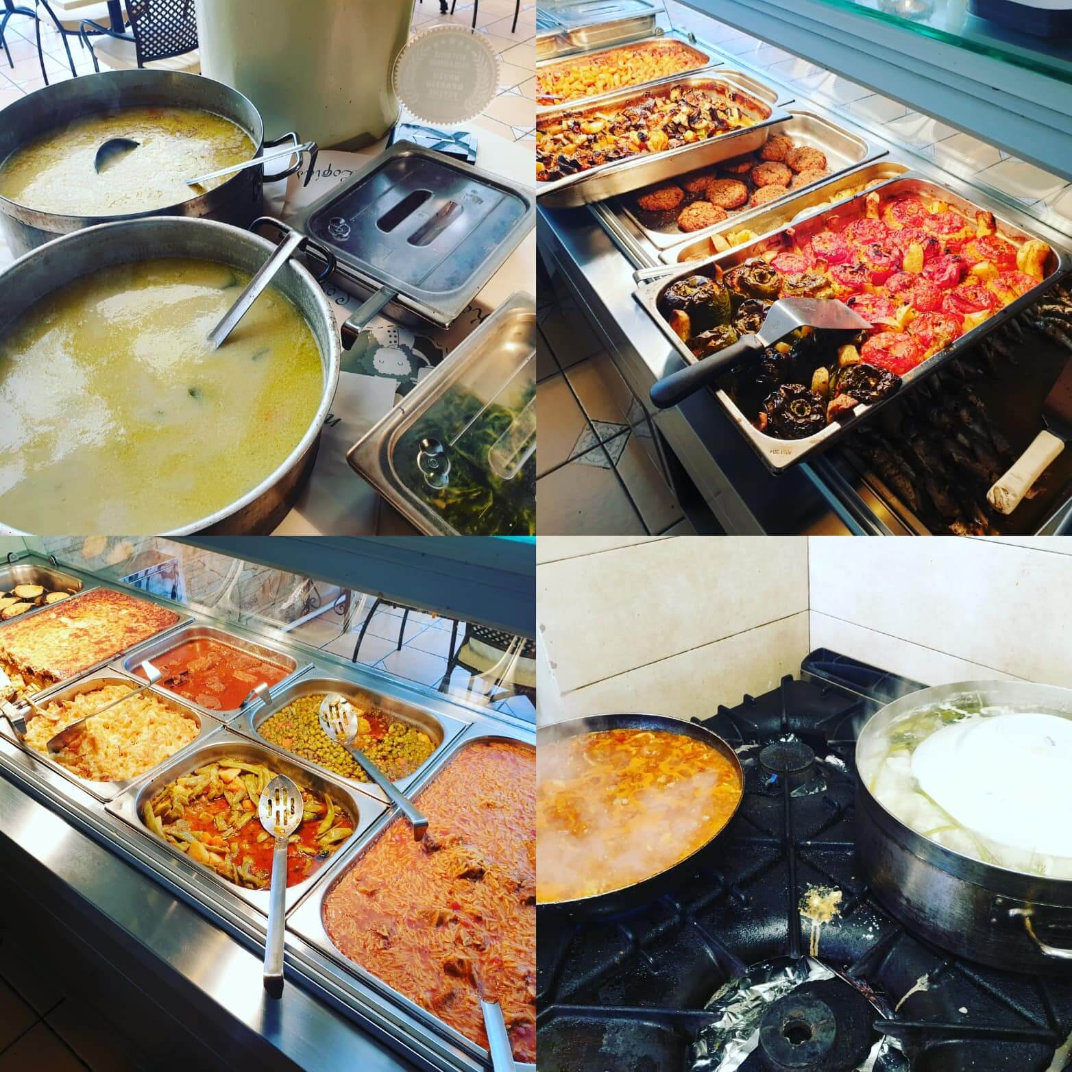 Μερικά από τα πιάτα μας: ✔Παστίτσιο, ✔Παπουτσάκια, ✔Σουφλέ, ✔Κανελόνια με κιμά, ✔Μοσχαράκι κοκκινιστό, ✔Χοιρινό φρικασέ με σέλινο, ✔Γιουβέτσι, ✔Αρνάκι γάλακτος φούρνου, ✔Μπούτι κοτόπουλο με πατάτες, ✔Μπούτι κοτόπουλο με μπάμιες, ✔Φακές, ✔Φασολάκια, ✔Λαχανοντολμάδες, ✔Γιουβαρλάκια, ✔Μοσχαρόσουπα, ✔Μπιφτέκια μοσχαρίσια, ✔Μπιφτέκια γαλοπούλας, ✔Χταπόδι με κοφτό μακαρονάκι, ✔Κοτόπουλο λεμονάτο, ✔Κριθαρότο με γαρίδες, ✔Σουπιά με σπανάκι, ✔Μπιφτέκια μοσχαρίσια, ✔Μπιφτέκια γαλοπούλας, ✔Τσιπούρα φούρνου