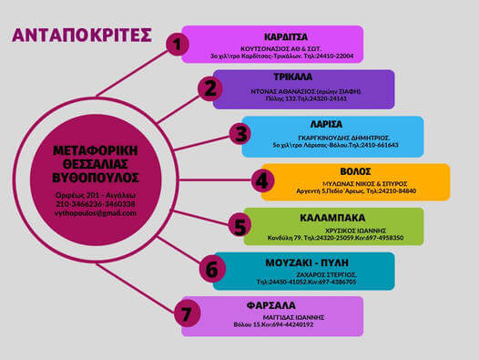 H μεταφορική εταιρία “ΒΥΘΟΠΟΥΛΟΥ” με καθημερινές αποστολές και μεταφορές σε όλη την Θεσσαλία Τρίκαλα Καρδίτσα Λάρισα Βόλο με άμεση παράδοση.
